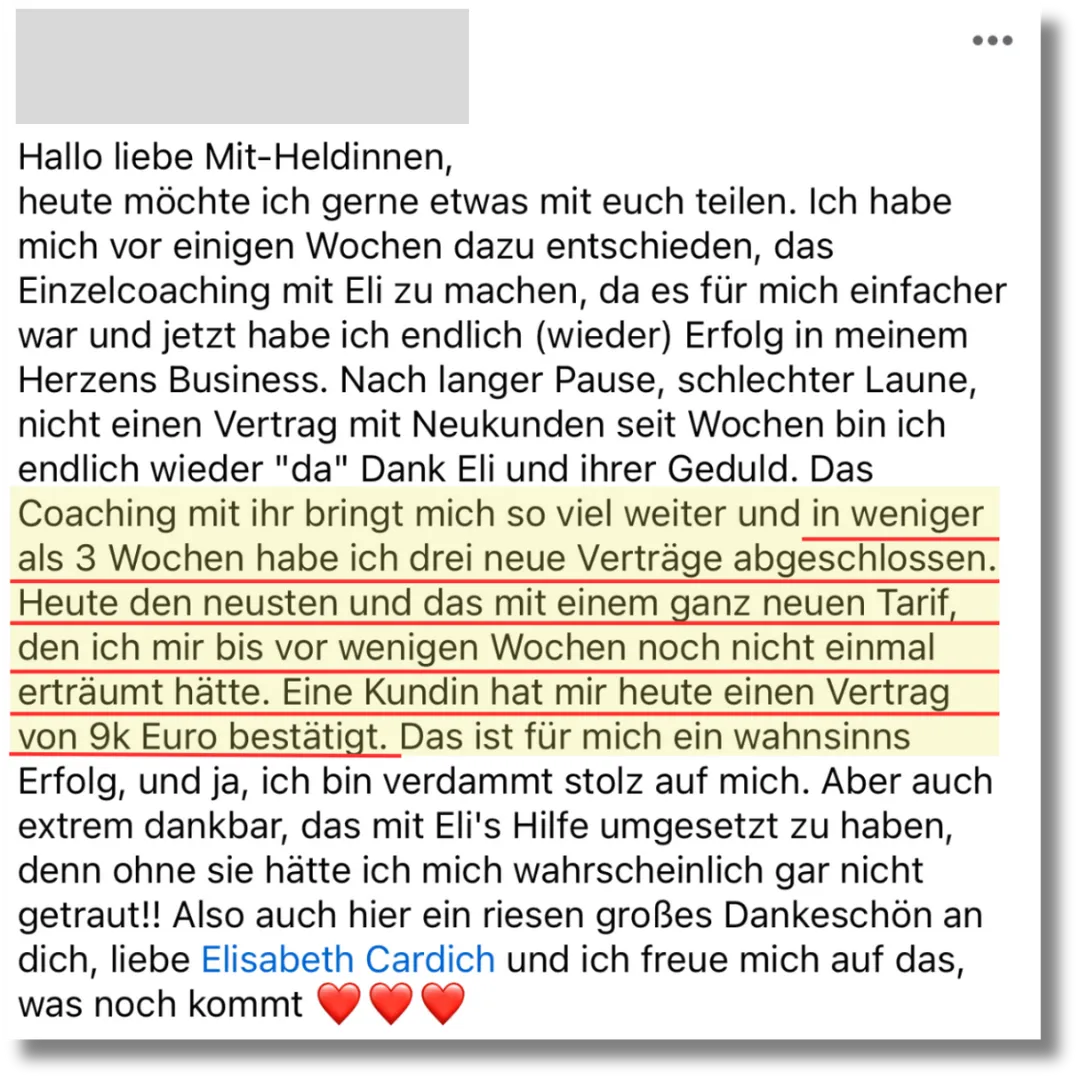 Jede Woche ca. 2 Stunden intensive Q&A-Sessions, Hands-on-Feedback und strategische Beratung direkt mit Eli Cardich. Du bekommst sofortige Antworten auf Deine brennendsten Fragen und kannst von den Herausforderungen der anderen Teilnehmer lernen.